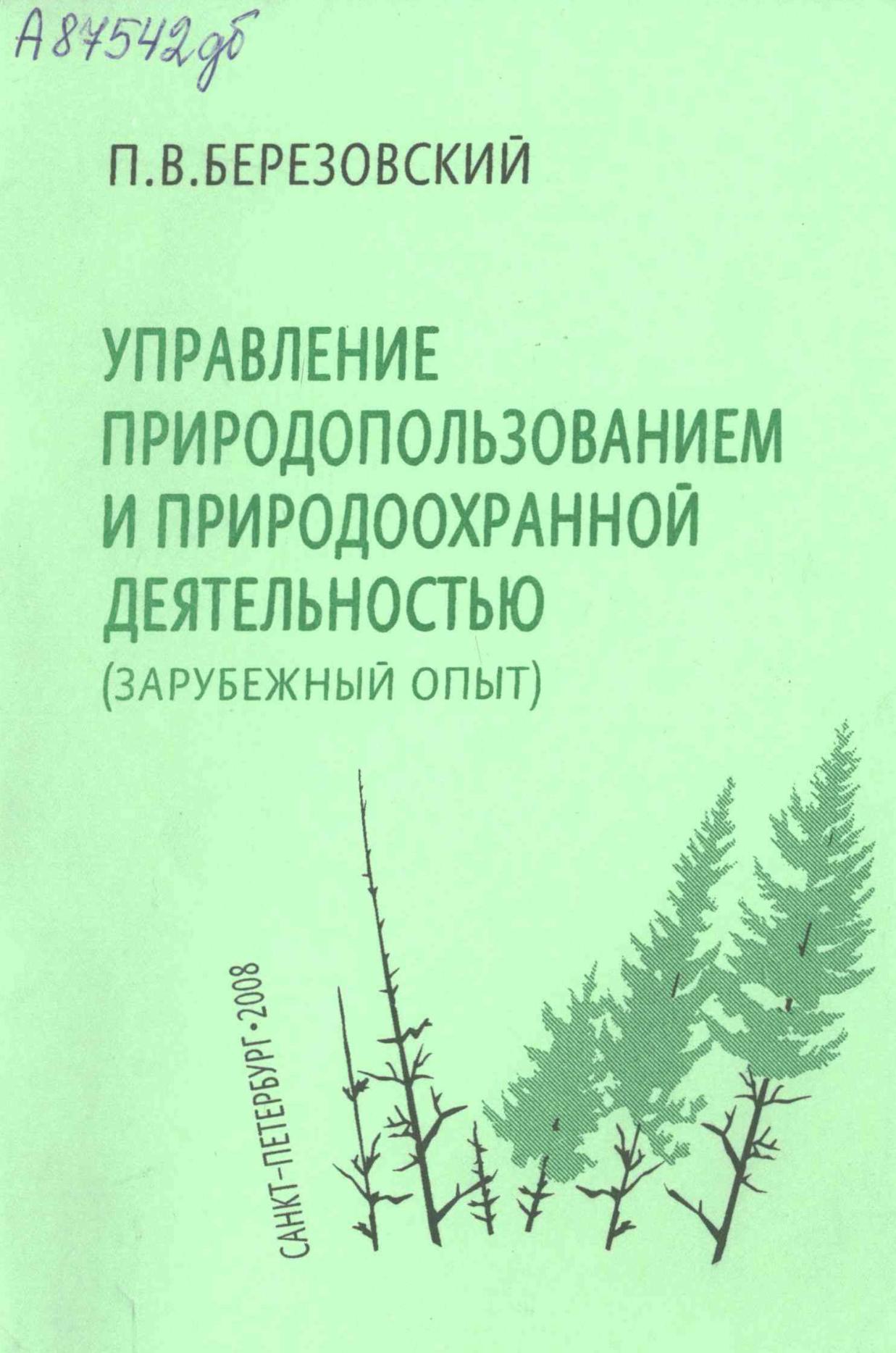 Управление природопользованием и природоохранной деятельностью (зарубежный опыт) [Текст] : учебное пособие / П. В. Березовский ; науч. ред. Н. В. Пашкевич, 2008. - 50 с.